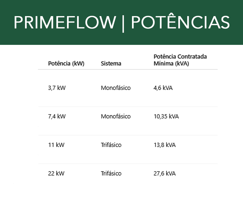 Para ajudar na tomada de decisão, aqui fica um quadro standard sobre as potências, que poderá ajudar a tomar a melhor decisão: